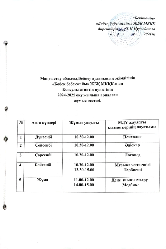 2024-2025 оқу жылына арналған Консультациялық пунктінің жұмыс кестесі